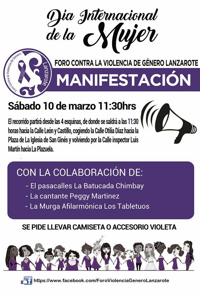 El Foro Contra la Violencia de Género de Lanzarote te invita a participar en las actividades organizadas para conmemorar el 8 de marzo.