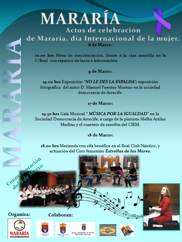 A las 19.30 horas: Gala Musical. “Música por la Igualdad” en la sociedad democracia, a cargo de la pianista Melba Artiles Medina y el cuarteto de saxofón del CIEM.