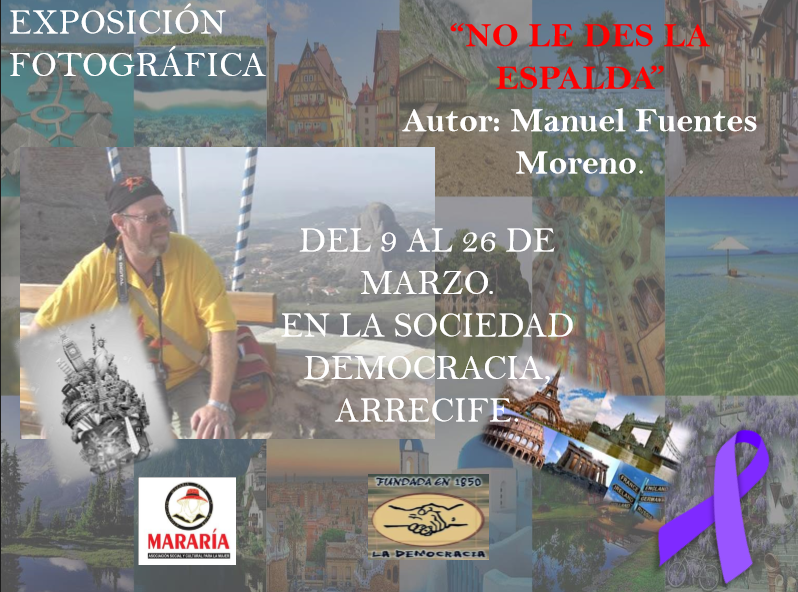 A las 19.00 horas: Inauguración de la exposición “No le des la espalda”; exposición fotográfica del autor Don Manuel Fuentes Moreno en la sociedad democracia.