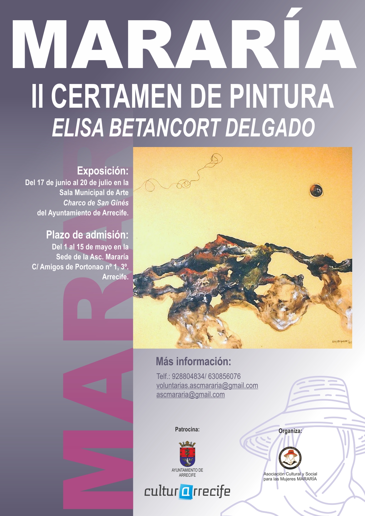 Hoy hemos presentado el “II Certamen de Pintura Elisa Betancort Delgado» , el cual facilitará el reconocimiento de la artista y hará visible su trayectoria e impulsará la expresión artística como elemento cultural, seña de identidad de ésta Asociación, cuyo principal propósito es denunciar la actual situación de desigualdad hacia las mujeres fomentando actitudes y comportamientos basados en el respeto, la igualdad y el firme rechazo a la violencia sexista. Los trabajos participantes se recogerán entre el 1 y el 15 de mayo en las oficinas de Mararía.